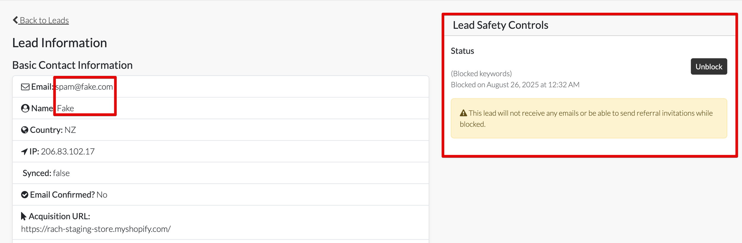 You can manually override blocked leads, by clicking on their profile. If you unblock a lead, you can then manually sync them with your integrated services e.g. Klaviyo.